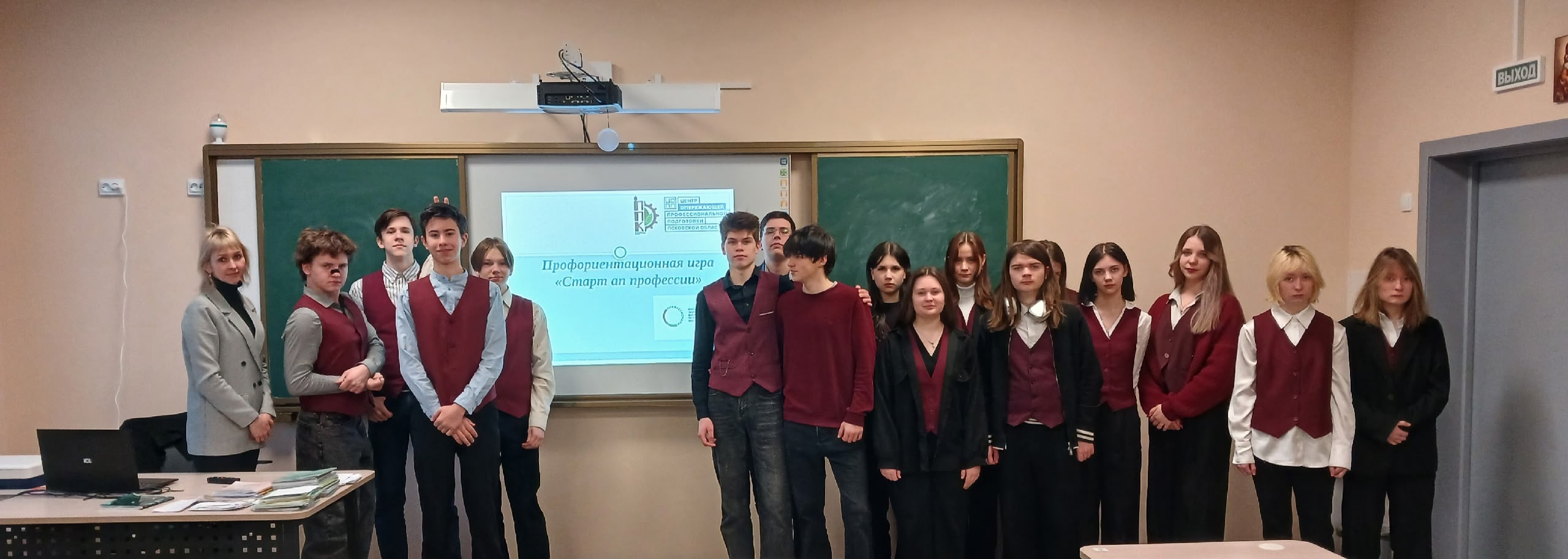 В рамках профориентационной программы регионального этапа чемпионата по профессиональному мастерству «Профессионалы» Псковской области специалист Центра опережающей профессиональной подготовки Ксения Викторовна Жирнова провела профориентационную игру «Стартап профессии» для учеников девятых классов МАОУ «Псковская гимназия №28».